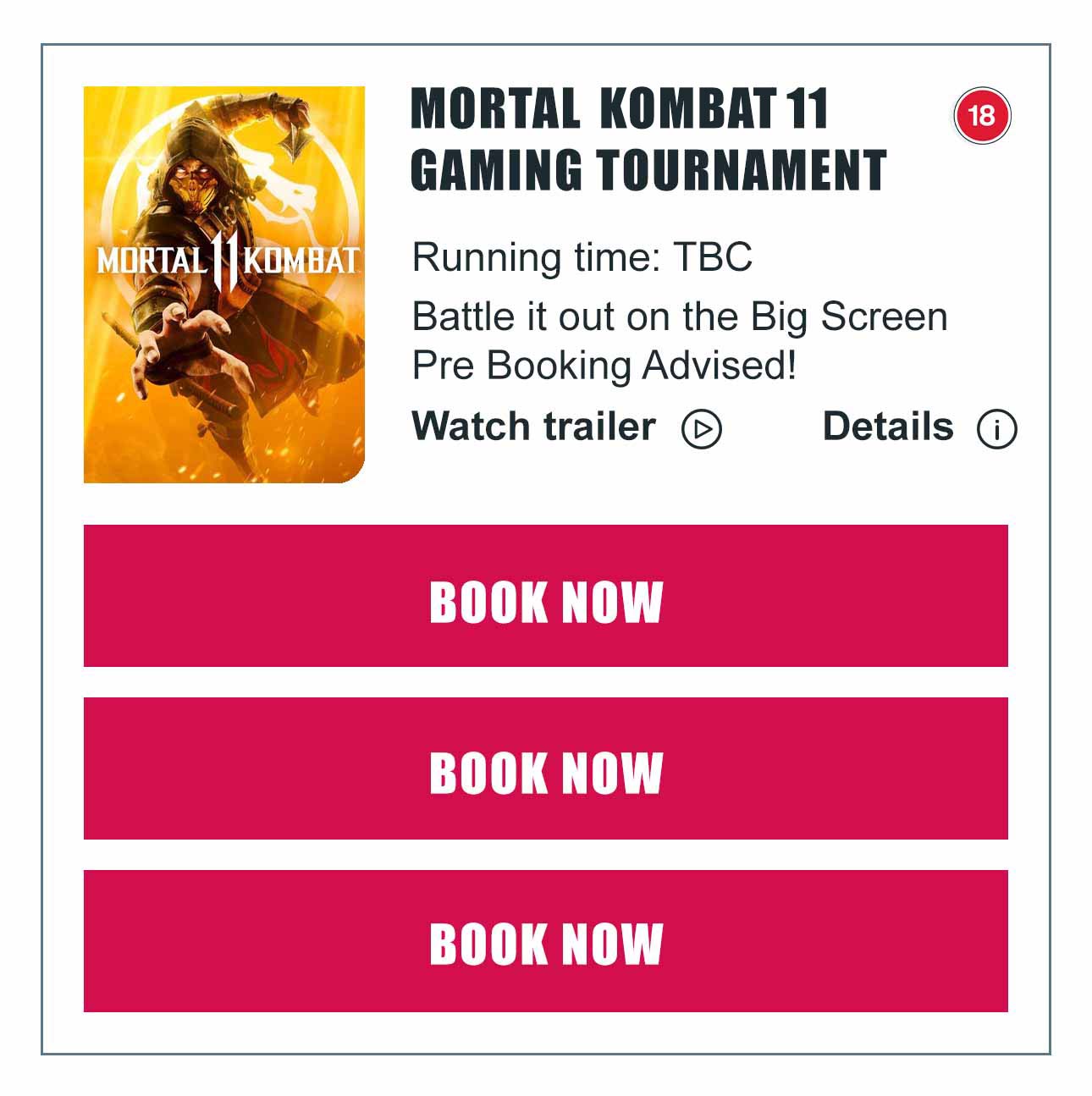 Book Mortal Combat 2 Gaming Tournament here - MAY 6